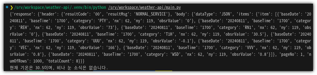. API 키는 일반 인증키(Decoding )으로 사용했다.