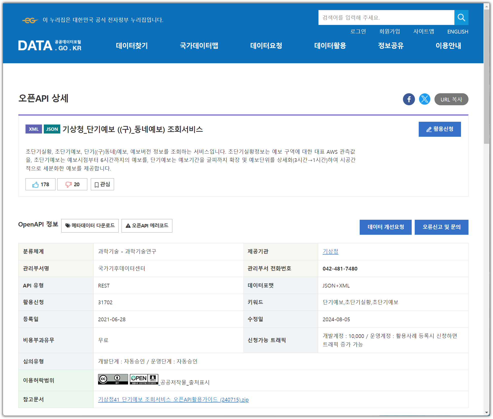 - 공공데이터 포털에서 제공하는 참고문서를 다운로드 받아야 한다.